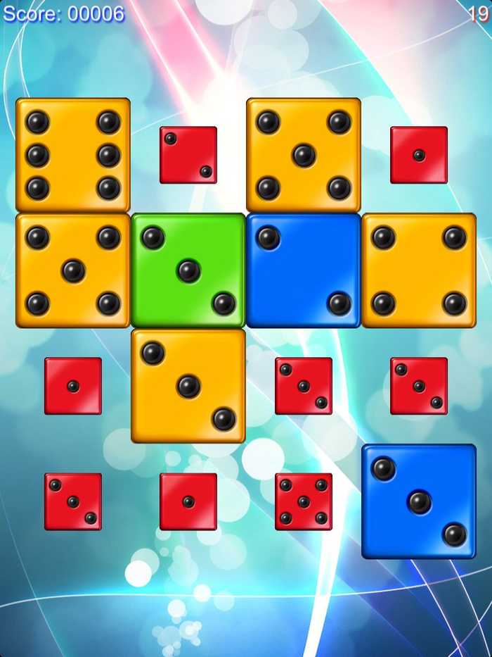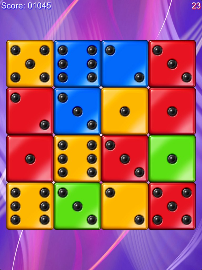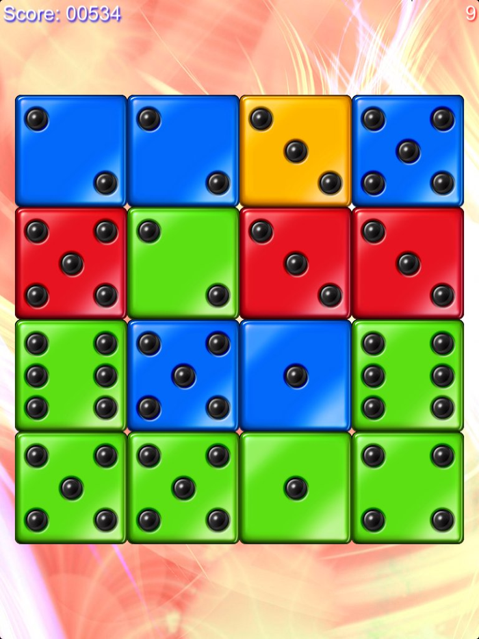 Tap on group of three or more dice and sort them in ascending or descending order by color horizontally, vertically or diagonally. Increase the same color dice value clicking on it.