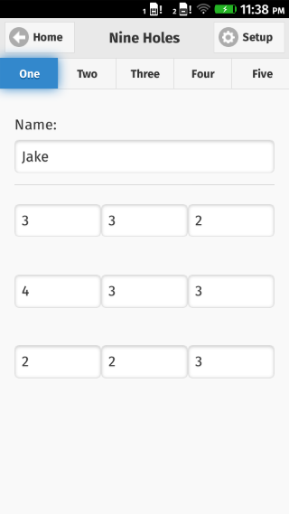 Disc Golf Score Card makes it super easy to keep track and save your scores while Disc Golfing! Not only can you track your own scores, but also the scores of up to four more of your friends! After the game is finished the app will calculate the total amount of throws, and how you scored. Some big features include: -Keep track of up to five player's scores! -Both 9 and 18 Hole courses are supported -Save and Load pars for your favorite courses for quick access next time! -Quickly set all the pars to 3 or 4 -Load Pars based on your location!* -Save your records and compare them to your own previous bests and your friends! -Find courses to play around you!* This app is already feature packed, but what's coming in an update soon? -A brand new landscape format scorecard to easily view and compare scores -Better location services -Integrated Smartwatch App (Pebble) Every feature in this app is available completely free for Firefox OS users! Enjoy!