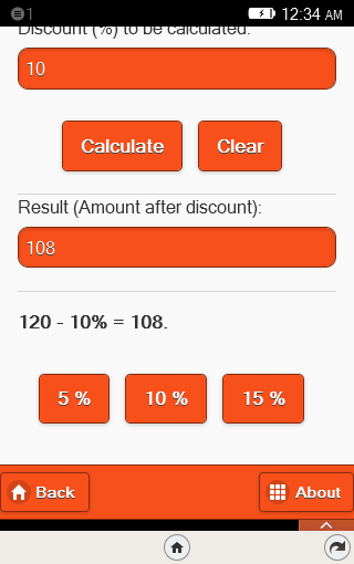 Calculate discount. Very useful for shopkeepers and peoples out for shopping. Very easy to use.