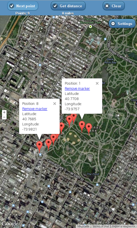 Free Distance Meter allows you to find the shortest distance between many locations while you drive a car or walk. You just need to select a few locations using GPS and have Internet connection enabled. The locations will be displayed on the map and the distance calculation will be done automatically. Video tutorial: https://www.youtube.com/watch?v=yXW2r9tChbo How to read the distance? 1. Move to your start position and press “Start point” button. You should see a marker on the map with your current position. 2. Proceed to your next location and press “Next point” button. Another marker should be placed on the map, which illustrates your second position. 3. Insert as many markers as you need. 4. Press “Get distance” button to have the distance calculation result under the button with a red line that marks it on the map. Additional features: 1. You can move markers using your finger to adjust them to a specific position. 2. You can tap on each marker to see the details. 3. You can remove each marker in marker details window. 4. Default measurement unit is based on your local mobile phone settings. 5. You can change the measurement unit, timeout for position acquisition and GPS accuracy in settings menu.