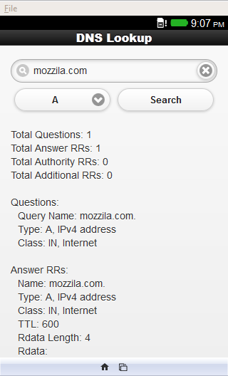This is a free version of app DNS Lookup Pro. Limitation of free version: - you can not change dns server (used OpenDNS), - supported query types A and AAAA only, - doesn't show DNS header information.