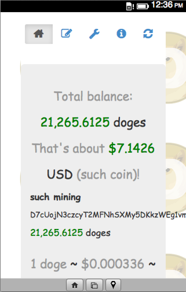 See how many Dogecoin you own and how much they're worth. Such richs! Enter your wallet addresses to see how much you have. Dogecoin Balance Wow also tells you approximately how much all your doges are worth in USD, CNY, EUR, or BTC. The DOGE exchange rate is displayed at the bottom of the screen. Backend uses data from dogechain.info and cryptocoincharts.info. If your balance looks lower than that reported by your wallet client: http://d2kg4h6gsenx6a.cloudfront.net/support.html#FAQ_why_does_my_balance