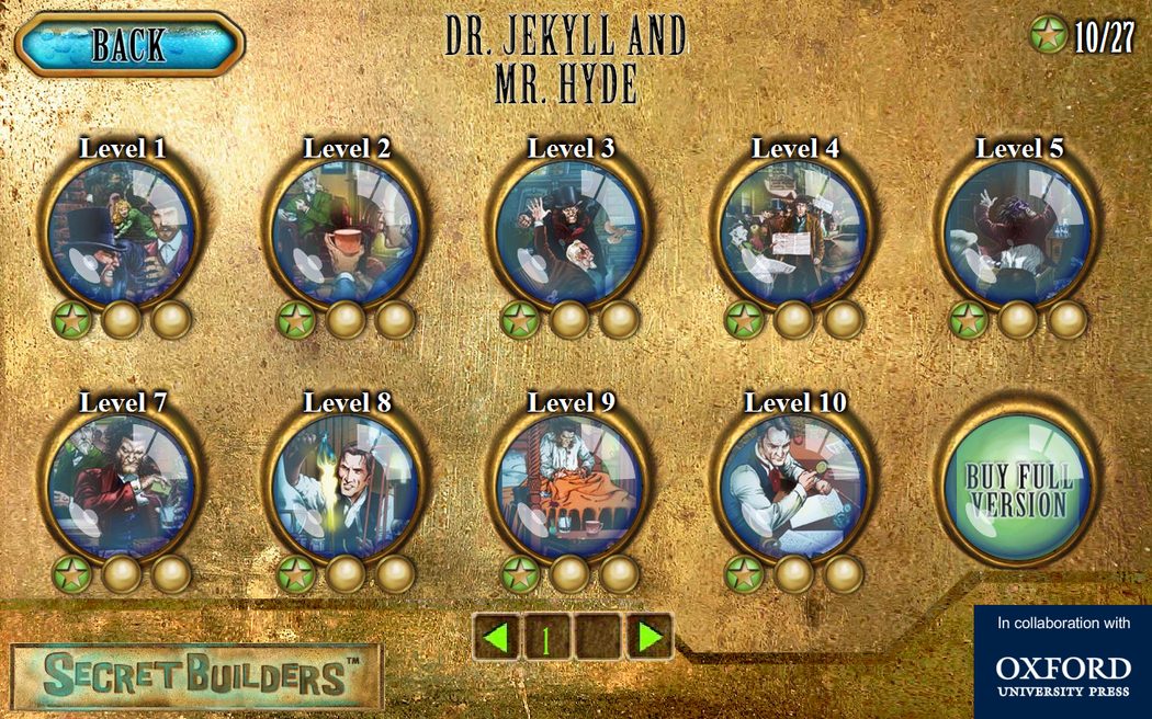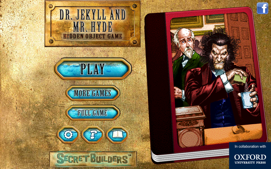 Get the hidden object game featuring Dr. Jekyll and Mr. Hyde. Based on the beloved classic Dr. Jekyll and Mr. Hyde by Robert Louis Stevenson, this hidden object game takes you through the story with high-quality audio narration! Explore the dark and foggy London of the good Dr. Jekyll as he struggles to keep the evil Mr. Hyde at bay! Based on the Oxford University Press edition of Dr. Jekyll and Mr. Hyde, this hidden object game features amazing art and challenging hidden object puzzles designed by award winning game producer SecretBuilders. Each brain-teasing level unfolds a scene from the book with beautiful illustrations and audio excerpts. • Many gorgeous scenes across lots of challenging hidden object game levels • Two puzzle modes of free game play: find by picture or by word • Magnifying glass feature to zoom in on those hard to find objects • A fun and enjoyable free game for kids to fall in love with reading and classics education • Among the best educational games for kids and adults to develop visual and spatial puzzle solving skills • Award-winning audio and illustrations from Oxford University Press' Dominoes Series for young readers
