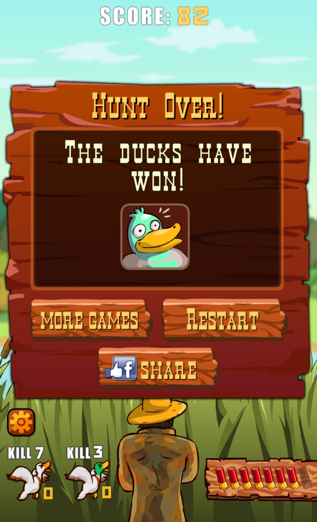 Duckmageddon is a classical Nintendo's Duck Hunt remake. The ducks overpopulated the nearby pond, the local ecosystem is in danger! Only you can restore the natural balance, so show those ducks no mercy! FEATURES: * 2 types of ducks * endless levels * hordes of birds and clouds of feathers! Controls: Tap or click anywhere to shoot. Once out of ammo, tap or click on the ammo panel to the bottom right to reload.