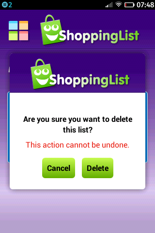 A simple shopping assistant: allows to create and manage shopping lists. Application features: - resolution independent - fast and responsive - smooth transition between views - highlight a list by choosing a distinct background color - single-click to: add, edit, complete, set as current, or delete list - tap-and-hold to manage list item - single-click to complete/reactivate list item - distinctive visualization