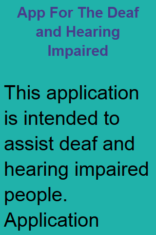 This application is intended to assist deaf and hearing impaired people.Application supports 42 languages.Build for the Society, With Care.