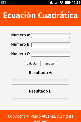 Esta aplicación es para la realización de ecuaciones de segundo orden, para una ecuación cuadrática con coeficientes enteros, existen siempre dos soluciones, no necesariamente distintas, llamadas raíces, que pueden ser reales o complejas (si los coeficientes son reales y existen dos soluciones no reales, entonces deben ser complejas conjugadas).