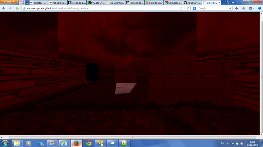 El Pasillo del Infierno: The revenge of the fridges. El Pasillo del Infierno is a place where you can find the horrors of the fridges. For desktop computers press A-D (or the keys) to move and SPACE to shoot. Touch support is still in development.