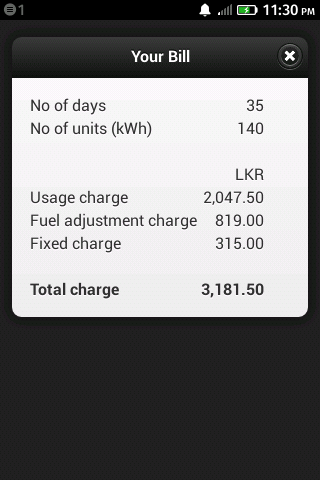 This is an electricity bill calculator for domestic and religious consumers in Sri Lanka This calculator can be used to calculate the bill for your electricity consumption. It can calculate for both domestic and religious consumers. It will display the cost components such as usage charge, fuel adjustment charge, fixed charge separately and finally the total charge for the period.