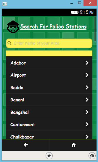This app is developed to help Bangladeshi people in emergency situation. Contact info about Police Station, Fire Service, Hospitals, etc are given here.When in need people can have a quick access to these information. More area will be covered in the next version. Map view will be added in the upcoming version where you can get a quick view and a road map to your nearest Emergency Services.