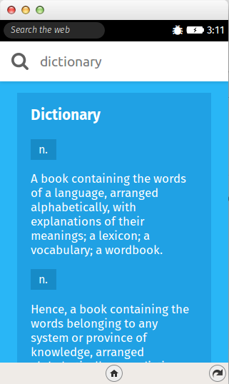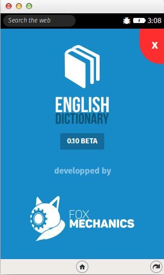 This is an English dictionary app which Contains 176 thousands of words Apps feature: 1. Huge library of 176 thousand words 2. Fast word Search Engine 3. Easy to install 4. Easy to use 5. No permission required 6. App works without internet connection 7. No Advertisement 8. Available for FireFoxOS 1.4 or 1.4+ Usefulness: 1. As the app works without an Internet connection, it will be a perfect match for low bandwidth users 2. you'll be able to access a huge amount of data without having to go online 3. Easy to Search words from the app