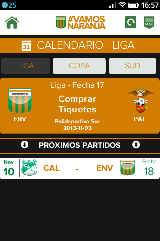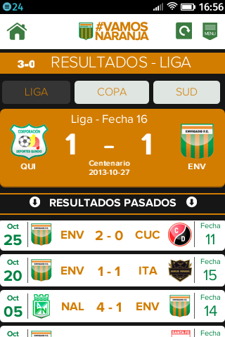 Aplicación de la naranja mecánica del fútbol colombiano ¡Creada por hinchas para hinchas! Esta versión de la aplicación del Patriotas Fútbol Club te permitirá encontrar de manera rápida, ágil y sin rodeos, toda la información que necesitas saber del equipo naranja del fútbol colombiano. Comparte a través de tus redes sociales, el orgullo de ser hincha del equipo cantera de héroes del país, utilizando la etiqueta #VamosNaranja En esta aplicación podrás encontrar: • Noticias cortas y concretas sobre el presente del club • Resultados actualizados en tiempo real. • Estadísticas y tablas de posiciones de todos los torneos en los que el club se encuentra participando. • Calendarios con la información actualizada sobre los partidos que el club esté por enfrentar, en todos los torneos en los que se encuentre participando. • Información minuto a minuto de los partidos del club, con actualizaciones sobre todo lo que va aconteciendo en el campo, ¡EN TIEMPO REAL! • Información actualizada sobre el plantel profesional del club (posición, lugar y fecha de nacimiento, estatura, peso, etc). ¡Conoce y ten a la mano la lista de jugadores e ídolos que lo hacen grande! • Acceso directo a las redes sociales oficiales del club, donde podrás interactuar con otros hinchas como tu.