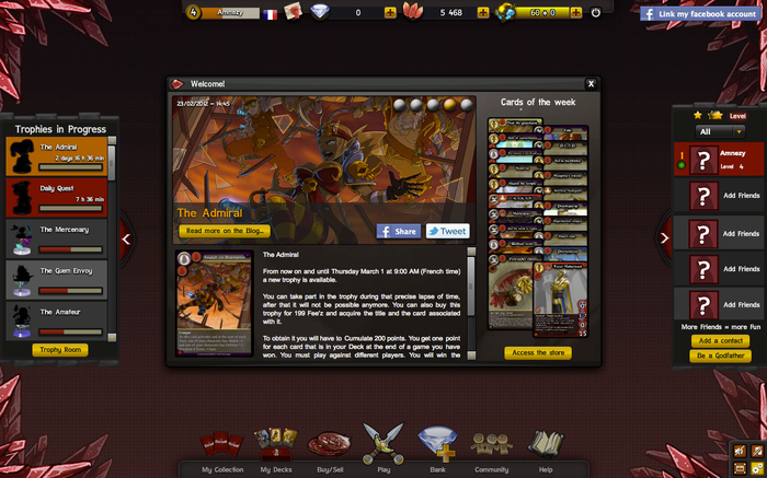 The Internet Trading Card Game Eredan iTCG (« Internet Trading Card Game ») is a browser trading card game that doesn't require any installation, nor download. A simple registration is required to play! Explore this beautiful fantasy world imagined and created by our studio in Montpellier, Feerik. Discover a medieval World with a touch of manga and humor and dive into Battle to prove your worth.