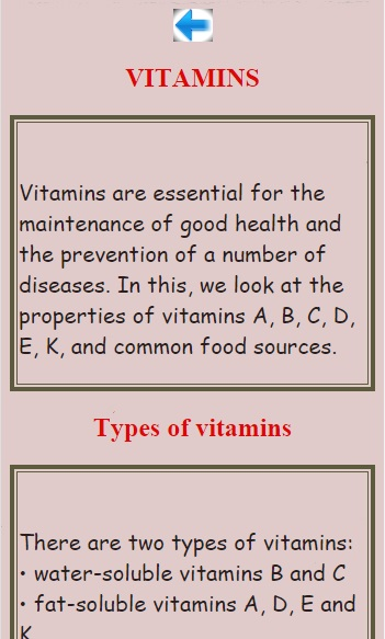 This app provides the list of all the Essential Nutrients and their sources. This app provides the list of all the Nutrients which are essentially required by the Human body and also the food sources from which we can obtain them. * This app covers the Essential Nutrients like Vitamins Minerals Carbohydrates Proteins Fats * FREE APP*
