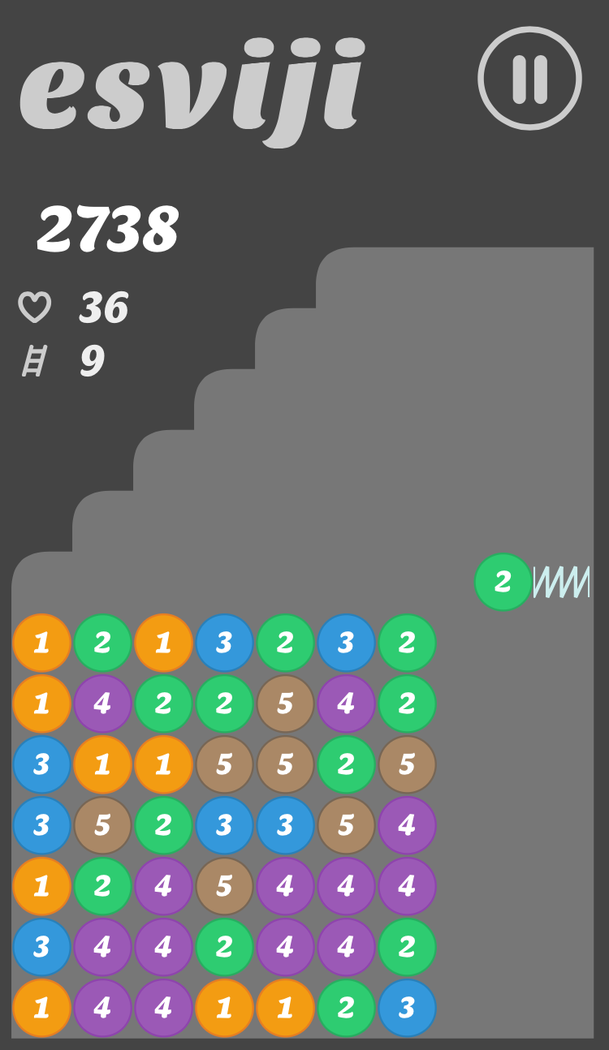 This game came out of my mind 20 years ago thanks to the great platform that were HP 48 calculators (I've had 3 of them). I loved playing Puzzle Bobble, Tetris and other casual game on my HP, but was also eager to develop my own game (a sily habit I have to develop games to discover new platforms/languages), and came with this idea of a kind of mashup of Puzzle Bobble and other games.