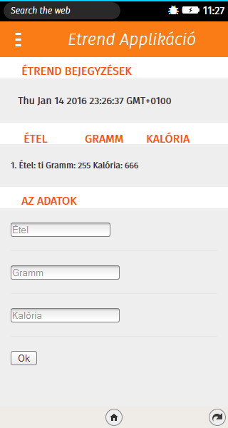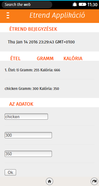 Ez egy nagyon egyszerű étrend applikáció. Alapvetően a felhasználó el tudja tárolni hogy mit evett, mennyi grammot és az hány kalóriát tartalmazott. Lényegébe egy naplózás az adott napi ételre.