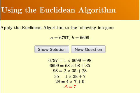 Interactive book from the BELLA project (BELLA E-learning Library with Libre Authorship) on the determination of the greatest common divisor of two integers using the Euclidean Algorithm.