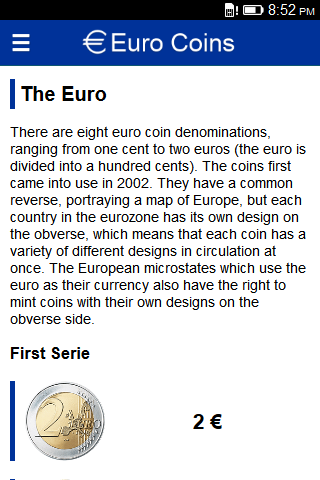 Bring your Euro coin list in your pocket. If you will travel to Europe, if you live in Europe or if you are just a collector this app helps you to keep track of all regular coins from the Euro Zone and also teach you the story of each coin. Already prepared for the 2014 coins from Latvia and Andorra. Collector or not this is a great way to make some savings ;)
