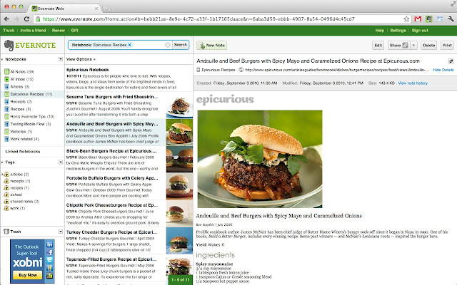 Save all of your ideas and experiences in Evernote, then access them from every computer and phone you use. ★ New York Times ‘Top 10 Must-Have App’, Winner: TechCrunch Crunchies, Mashable Awards and the Webbys. ★ Evernote is an easy-to-use, free app that helps you remember everything across all of the devices you use. Stay organized, save your ideas and improve productivity. Evernote lets you take notes, capture photos, create to-do lists, record voice reminders--and makes these notes completely searchable, whether you are at home, at work, or on the go. Key Features: - Sync all of your notes across the computers and devices you use - Create and edit text notes, to-dos and task lists - Save, sync and share files - Search for text inside images - Organize notes by notebooks and tags - Email notes and save tweets to your Evernote account - Connect Evernote to other apps and products you use - Share notes with friends and colleagues via Facebook and Twitter ★ Premium feature: take notebooks offline to access them anytime ★ Premium feature: allow others to edit your notebooks ★ Premium feature: add a PIN lock to your Evernote app Here are some ways to use Evernote for your personal and professional life: - Research smarter: snap photos of whiteboards and books - Take meeting and class notes, draft agendas and research notes - Plan a trip: keep track of travel plans, plane tickets and passports - Organize and save recipes; search by ingredients later - Create a grocery list or task list and check things off as you go - View web pages saved in Evernote on your desktop - Capture ideas and inspiration on the go - Access files and notes you create on your phone from your desktop - Keep track of products and prices for comparison shopping purposes - Keep finances in order: save receipts, bills and contracts - Reduce paper clutter by taking snapshots of restaurant menus, business cards and labels - Use Evernote as part of your GTD system to help you stay organized - To get the most out of your Evernote experience, download it on all of the computers and phones that you use. Evernote Web is optimized for the desktop environment. For the best Evernote experience on mobile devices please install one of our native mobile apps for iOS, Android, Blackberry or Windows Phone. Evernote is available for: Desktop: Mac, Windows and Web Mobile: Android, iPhone, BlackBerry, Palm WebOS, Windows Mobile Tablet: Android, iPad Web: Evernote for Web; Web Clippers for Chrome, Safari, Firefox, Internet Explorer Learn more: http://www.evernote.com/about/getting_started/