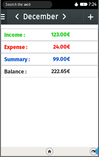 This app serves for expense tracking. It is a simple INCOME/EXPENSE calculator.