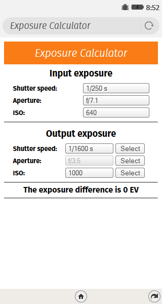 A small utility to help photographers determine equivalent exposures.