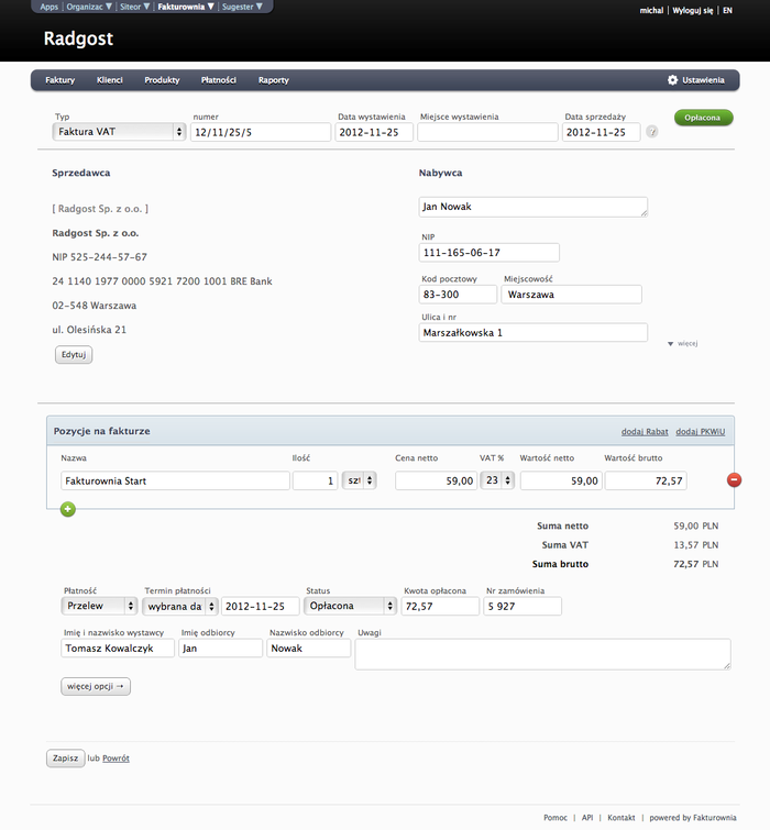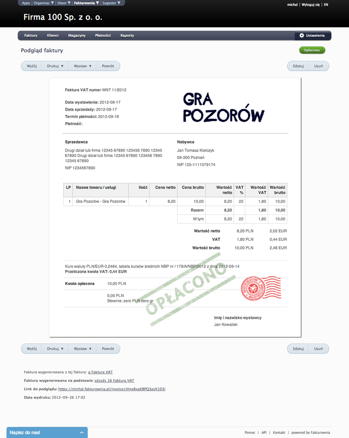 - Oszczędność czasu poświęconego na wystawianie faktur