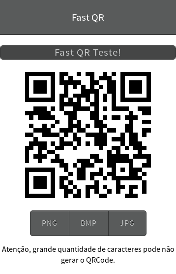 Gerador de QRCode offline, com opções de download em .jpg, .png e .bmp.