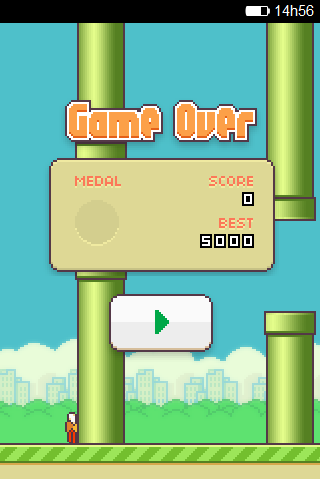 Versão igual a original de Flappy Bird. Desenvolvida por Victor Pubh ( http://facebook.com/VictPubh ). Com a lib Buzz ( http://buzz.jaysalvat.com/ ) Obs: A versão não é original!