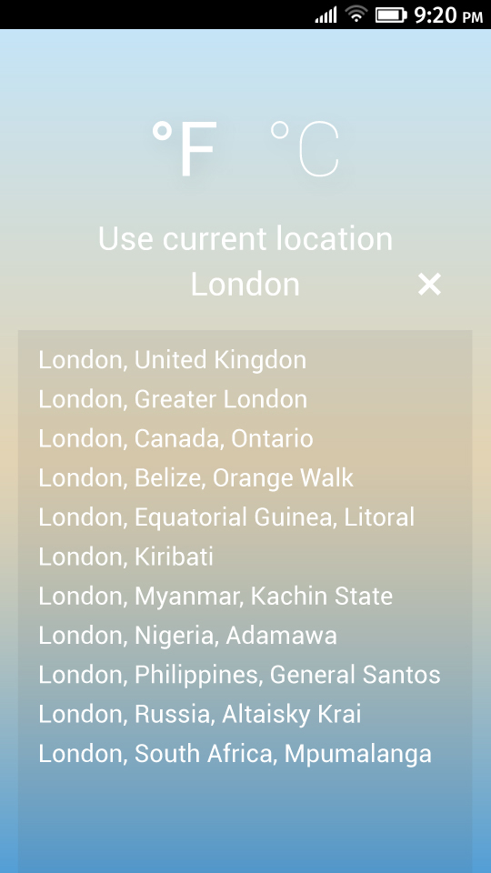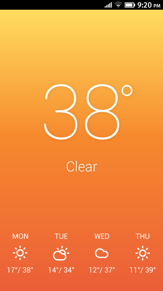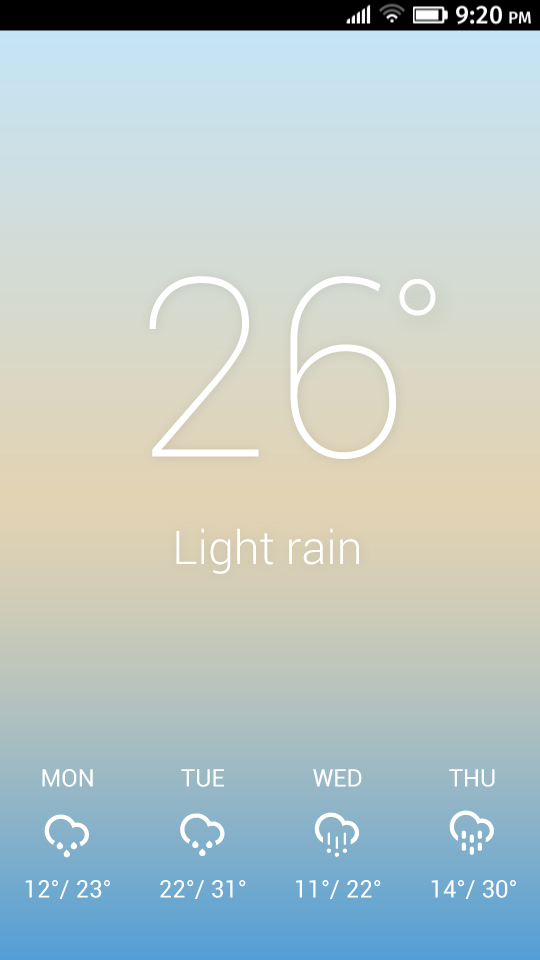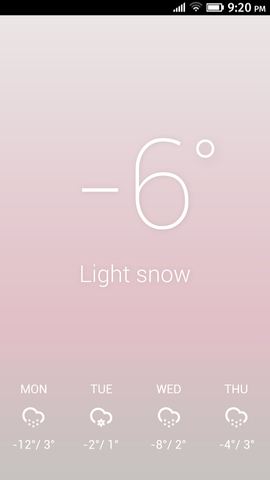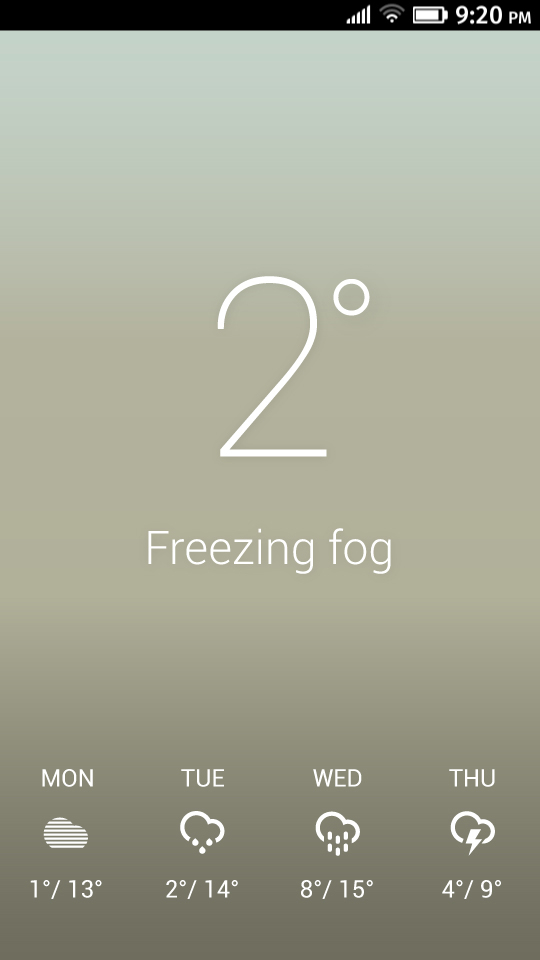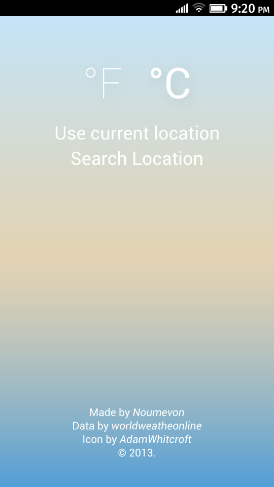 F&C gives an easy overview of current weather conditions as well as the next three days. Location can be set with geolocation or manually using search option. Temperature is available in both Fahrenheit and Celsius, and it can be easily changed by tapping on the symbol. Colors are changing dynamically to express current weather and atmosphere.