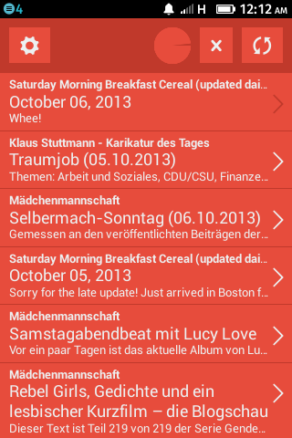A mobile feed reader client for TinyTinyRSS and ownCloud News with which you can: