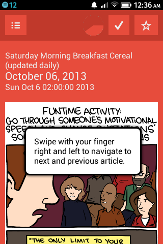 - You swipe right and left to navigate through the articles