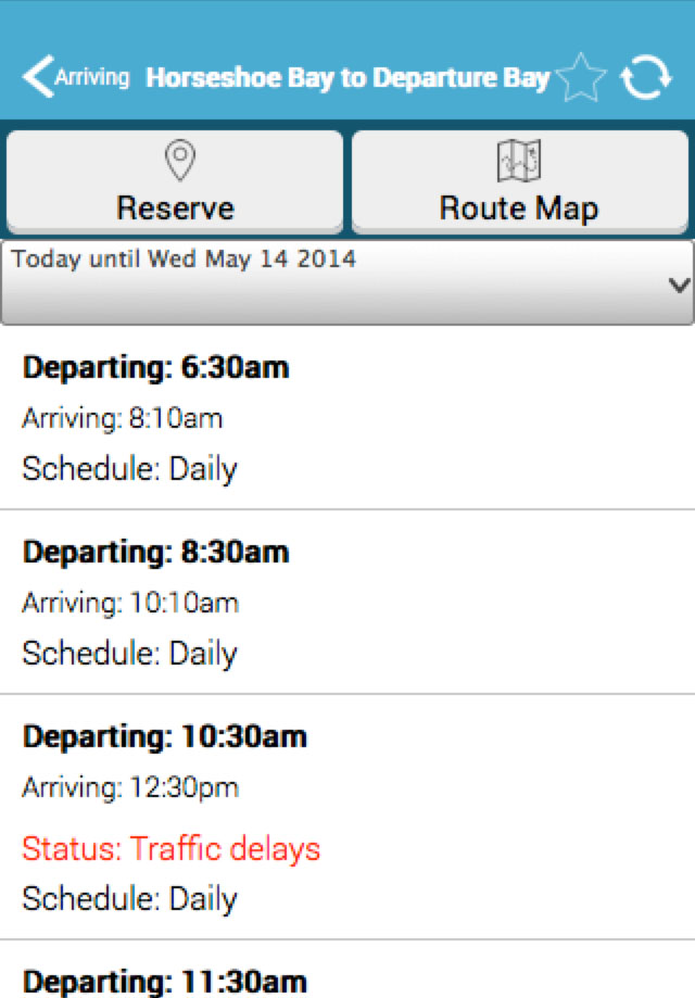 BC Ferries Schedules for FirefoxOS! Ferries is the must have companion for any BC Ferries rider. It's intuitive, quick, and smart. Check every schedule in the BC Ferries fleet with delight and ease. With the Plus version of the app you can check loads, get current status' and even get live tracking of Ferry vessels. All in this beautiful and easy application. Features of this app include: • Simple intuitive interface • Fast Native support • A quick mobile reference pertaining to B.C. Ferries