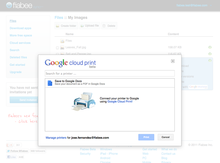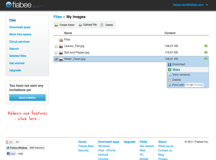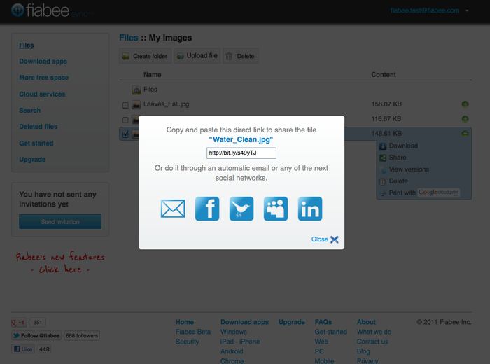 A direct access to the fully native sync/sharing cross platform service. Access and manage your files from any device. Fiabee provides automatic and native sync across your Mac, PC and mobile devices / tablets. • Share files/folders with control and security. • Remotely wipe the content. • (Cloud) Print directly from your mobile device.