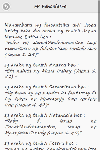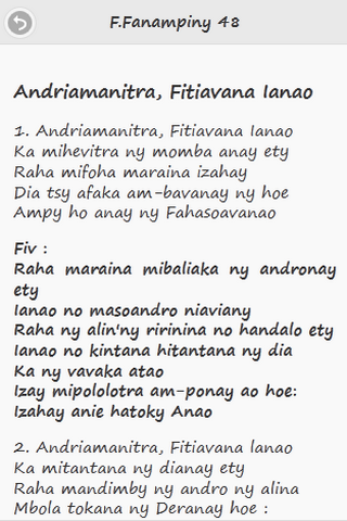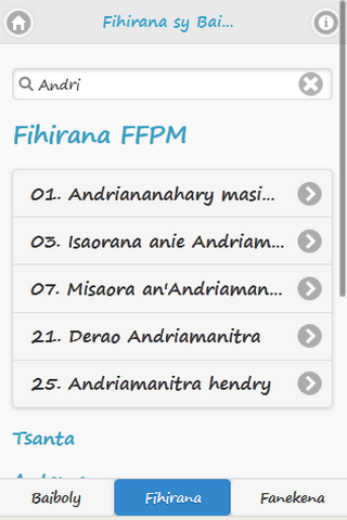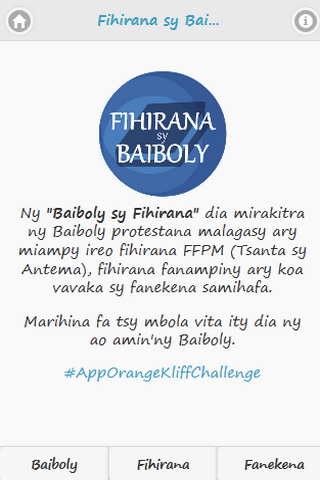 Fihirana FFPM sy Baiboly protestant Malagasy. ''Fihirana sy Baiboly'' est une application dediee pour les protestants malagasy. Cette application contient les cantiques, la Bible et certains serments, ainsi que deux prieres courantes durant les cultes ou les messes. #AppOrangeKlifChallenge