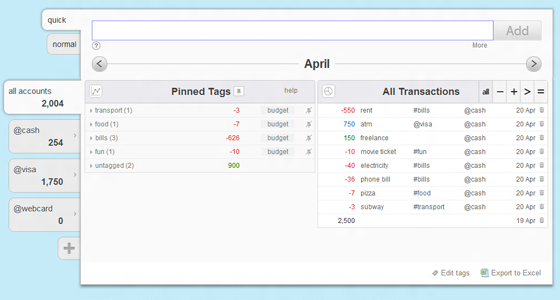 Finance41 is a free online personal finance service that keeps track of your spendings, incomes and savings. Easier to use then an Excel spreadsheet, yet very powerful, Finance41 is built for people who want a clear insight of their money flow without the headaches of complicated software. - add transactions quickly - categorize with tags - analyse your spending - maintain control of your finances Finance41 uses cutting edge technologies to create the greatest user experience, keeping things easy and simple while providing all the capabilities of a powerful finance tool.