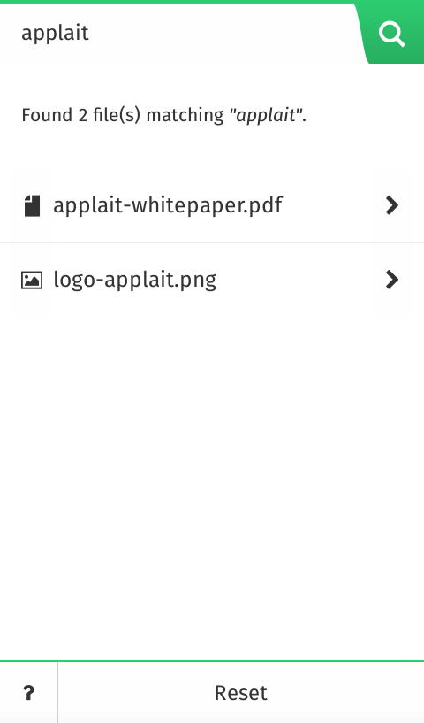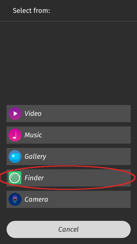 File search and file picker app for Firefox OS devices. Finder provides an easy file search on your Firefox OS device. Next time when you try to add an email attachment, or upload a music file, or find your favourite song, you can ask Finder to find it for you. Now you can also share files with Finder. Features: