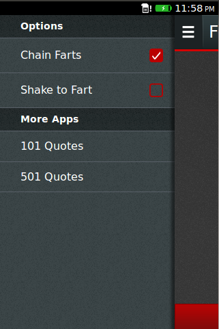 Random farts whenever you press the button. Code available on github. Please feel free to submit pull requests to improve it. https://github.com/AlexLakatos/firefart