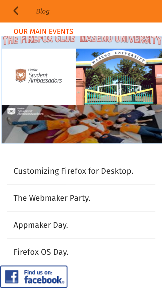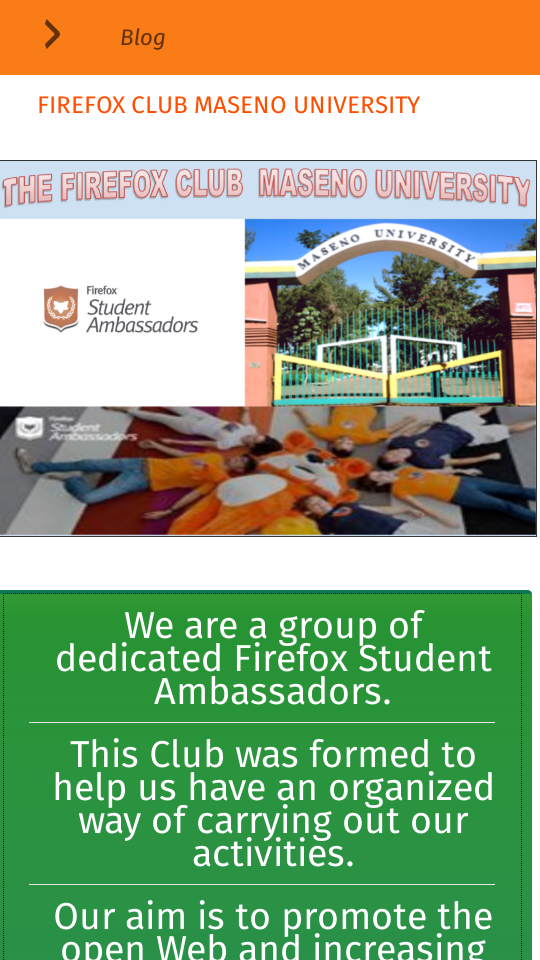 Firefox Club is an app that contains details about the Firefox Club Maseno University.Users can directly visit our blog from the home page without having to memorize it's link or searching it.Use this app to learn more about the FSA community at Maseno University.The app will also keep you updated with our upcoming activities and events.