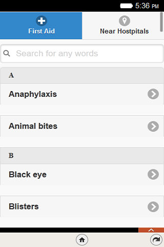 First Aid is an app where you can get the First Aid tips and also you can see your near hospital around you.