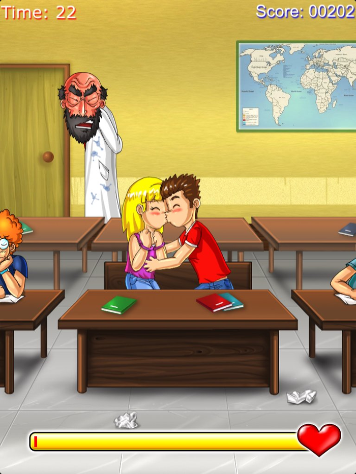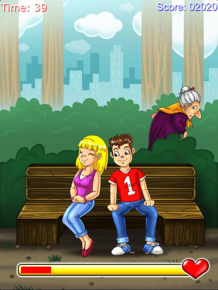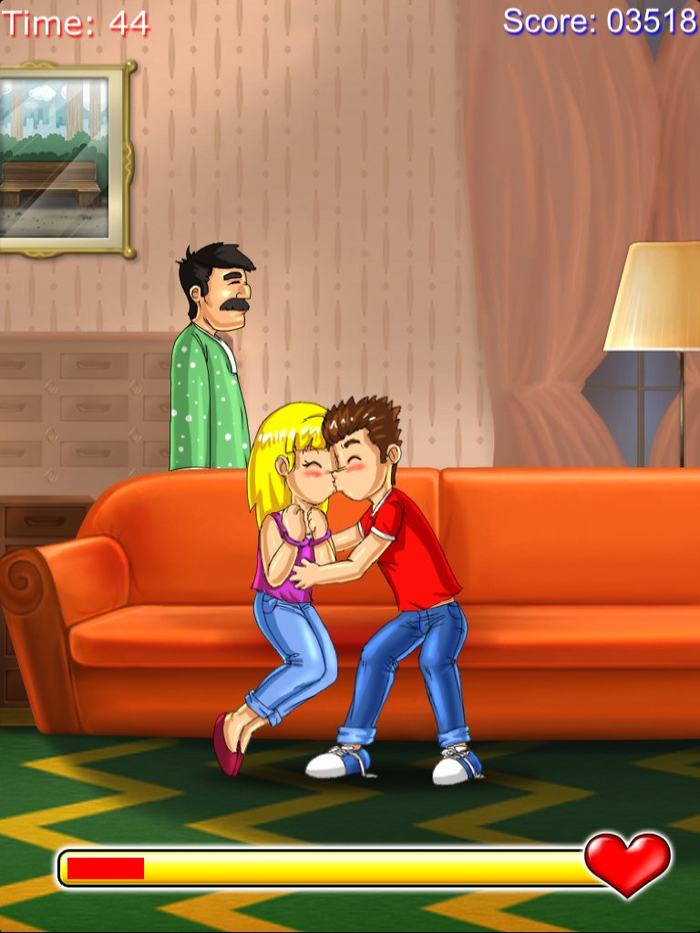 Kiss your girlfriend without getting noticed by other people. Touch the screen to keep kissing as long as you can. Do not get caught by releasing the finger.