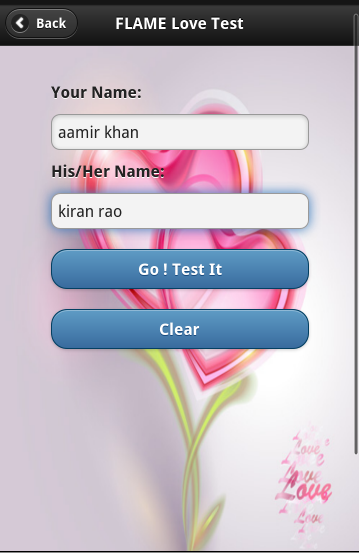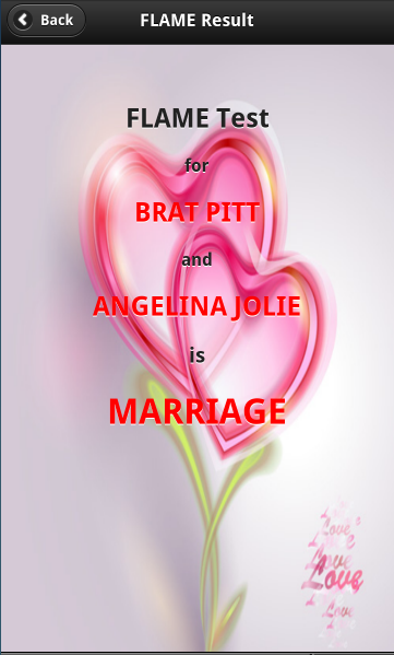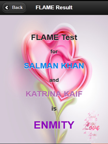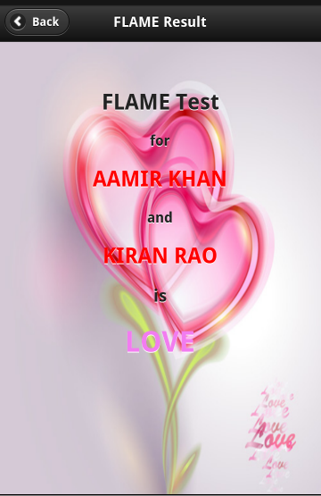 Do you feel inclination towards some particular boy/girl or feel repulsion. Find why this happen to you. Try FLAME LOVE TEST to find out why this is happen to you. FLAME Test is a entertaining tool for testing love, marriage compatibility. FLAME stands for FRIEND, LOVE, AFFECTION, MARRIAGE and ENMITY. AND THIS WORK...