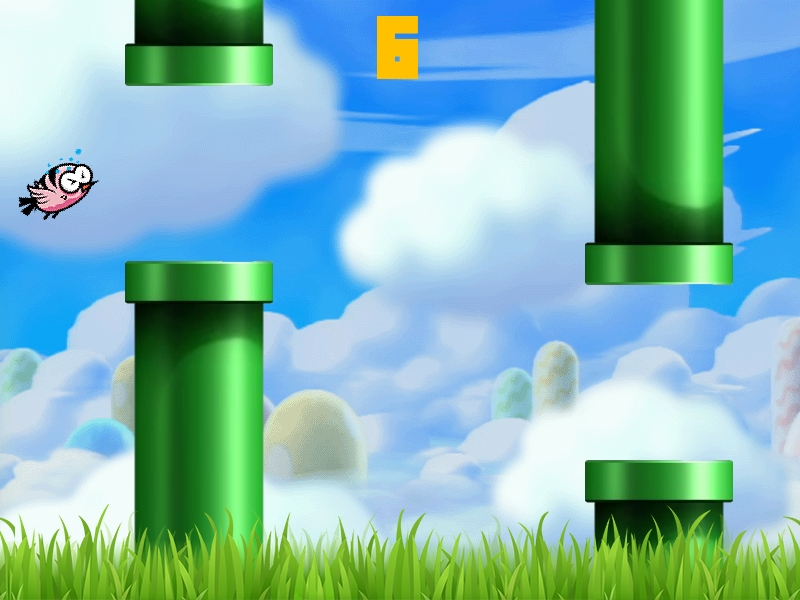 It's an amazing Flappy Bird clone. Share your scores and challenge your friends. Have fun! Just click or touch the screen to fly the floppy bird while avoiding the huge pipes. Every pipe counts 1 step and your aim is to reach higher steps.