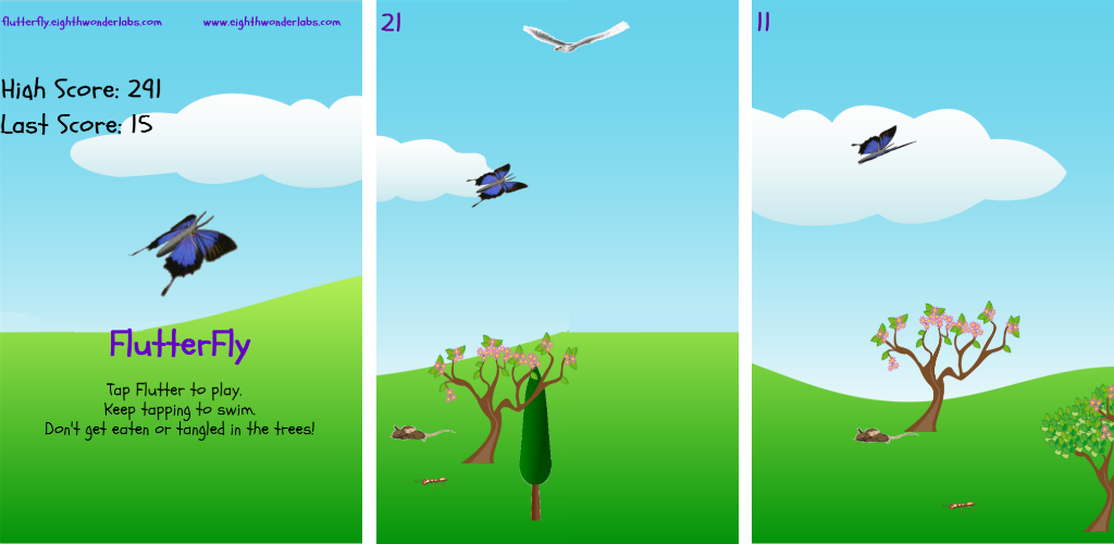 Flutter the Butterfly just wants to go out for the day to flutter around but she quickly ran into a few hungry animals. Help her fly through the field safely. In the same fashion as the always fun helicopter and flappy bird style games, tap or click the screen to fly up. Another great Junior Newton title, FlutterFly takes from already popular games and introduces an educational element to the game while keeping the game just as fun. FlutterFly is easy to play for all ages but impossible to master. As with our other Junior Newton games, Flutter is a real butterfly called a Pipevine Swallowtail (Battus philenor) which lives coast to coast across the southern half of North America. The predators you see are real life predators of the Pipevine Swallowtail as well as most other butterflies. Learn a little, have loads of fun with our Junior Newton titles. Click on the "FlutterFly" link in the game to learn more about the characters in the game.