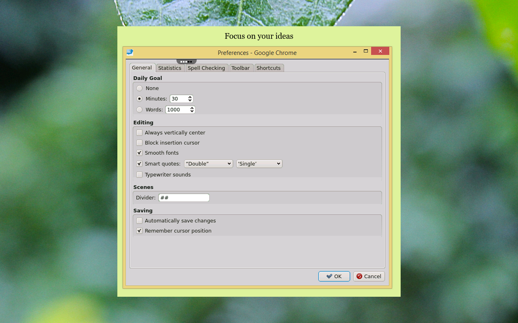 Focus Writer on rollApp