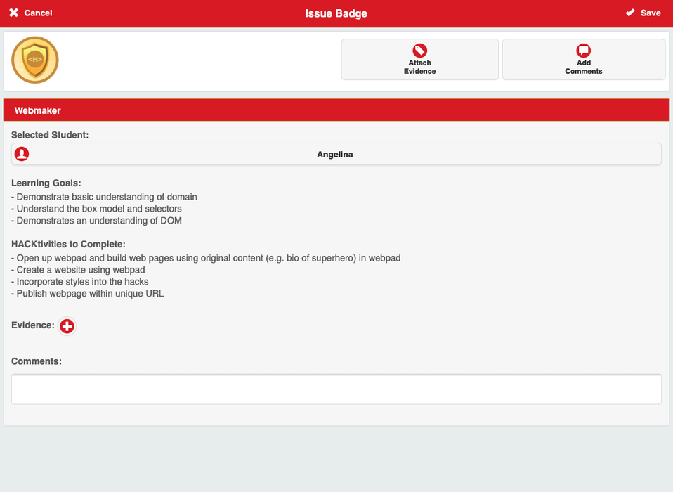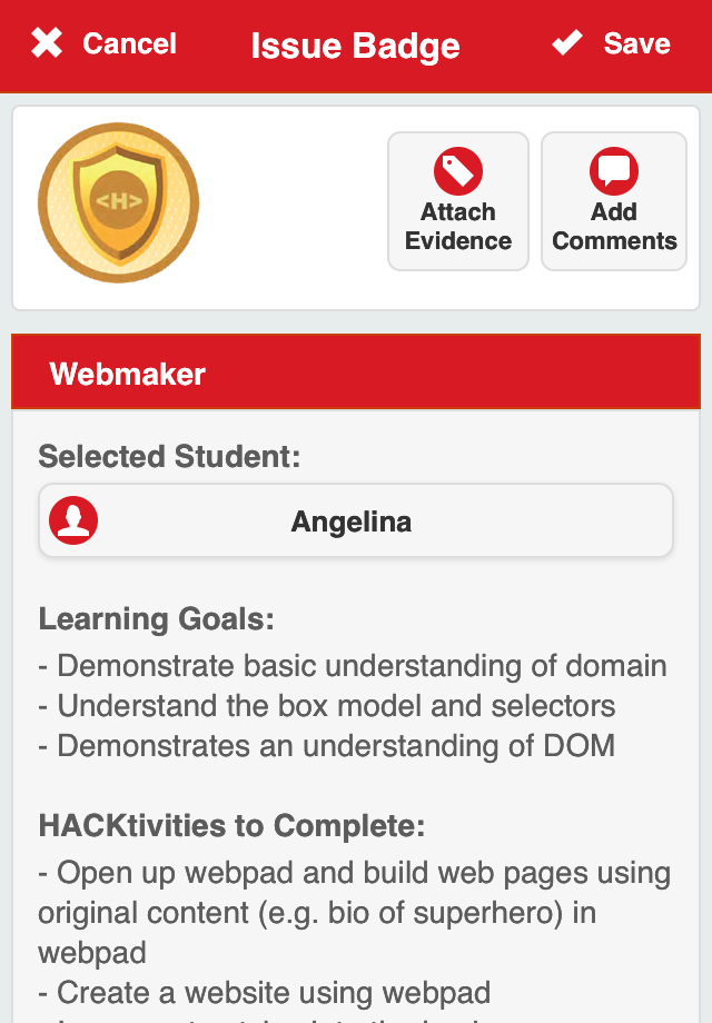 Using your ForAllRubrics (www.forallrubrics.com) account, issue badges using your device to students in your classroom. Students can then push their badges to the Mozilla Open Badges Backpack. ForAllBadges even works when you don't have an internet connection! Offline support allows you to issue badges when you are not near an internet connection.