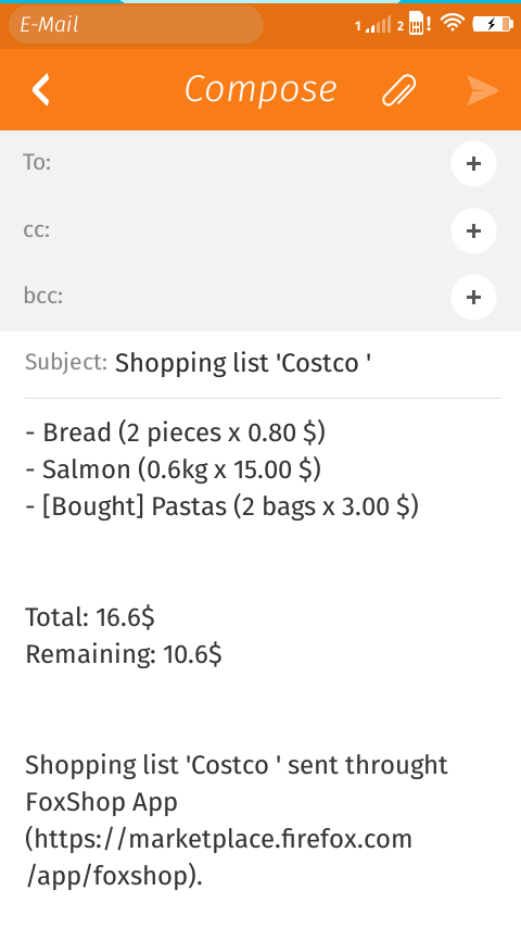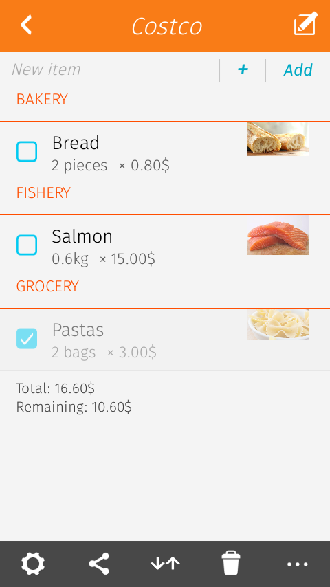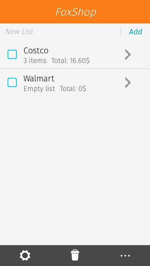 With FoxShop, you easily create, edit and share multiple shopping lists directly from your device, in your language. FoxShop is time-saving, you can manage quantities and prices in your currency to optimize your purchases and add items by scanning them. It lets you always keep an eye on the total amount of your list! Now, you don't have to keep everything in mind, and you can even clone a list to reuse it. Be organized, try FoxShop!