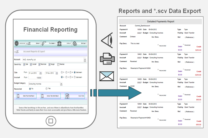 Free ebankbooks Accounting for touch devices and PC and gives small business big business capability with: invoices, expenses, budgets, job costing, cash flow, contacts, multi-user, multi-bank accounts, reports and more Built for Consultants, Contractors and Professionals on the move! Register now and try this absolutely free online accounting/business app that allows you to access your data and to work on any device, anywhere and anytime. Secure sales and purchases by preparing and emailing invoices or quotes with a fluency and immediacy that will impress clients and suppliers with your professionalism, timeliness and technology. Our sales and purchasing processes include job costing, contacts, suppliers, quotes, invoices, budgets, cash flow, business health check, graphing and email - this list is not exhaustive and is growing. Enable Jobs module and make the complexity of managing jobs simple. Discover job profitability with a single click. Jobs can contain multiple expenses, invoices, quotes and progressive payments plus a comprehensive job profit report. ebankbooks gives small business big business capability. This super JavaScript app is built from the ground up to be a touch application so it works with a directness and fluency on your iPad, Android tablet, smartphone, MAC and PC. As ebankbooks is a web app, there is no 'App Trap' locking you in to specific hardware or OSs. Setting up is a breeze. You will be up and running in no time. ebankbooks multi-user security allows business to be more flexible and scalable as you can outsource or distribute your work. So with ebankbooks you can easily integrate online bookkeepers, accountants and sales seamlessly with little or no effort. Easily manage and watch your business with our advanced business tools – the list of functions is growing every day. Everything is easy and accessible and designed to take the guess work out of your financial position. Register now to put you in charge and ahead of the competition. Join the rapidly growing online community and gain freedom and assure your future. Viva la revolution, Viva le new ecomomi!