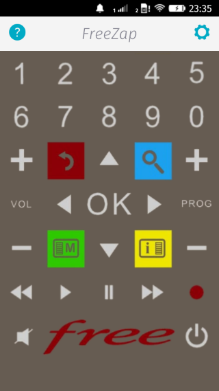 Freebox Player V6 Révolution remote control Free is a French telecommunications company that provides voice, video, data, and Internet telecommunications to consumers in France. FreeZap is a virtual remote control for the 'Freebox Player' set-top box. Developed and tested on Firefox Flame running Firefox OS 2.0 The source code for this app is freely available at https://github.com/valos/FreeZap under the GNU Affero General Public License v3.0