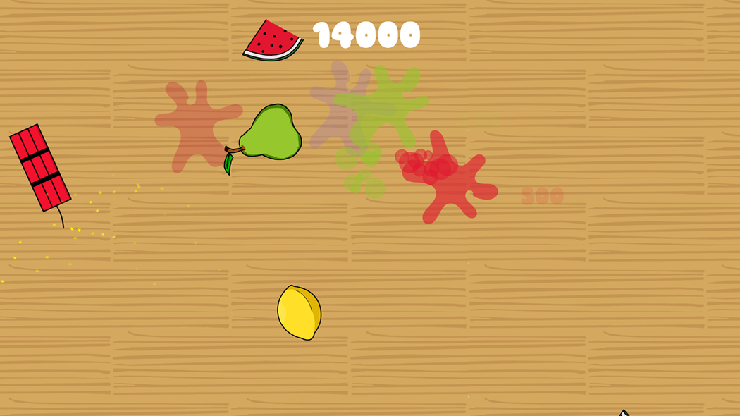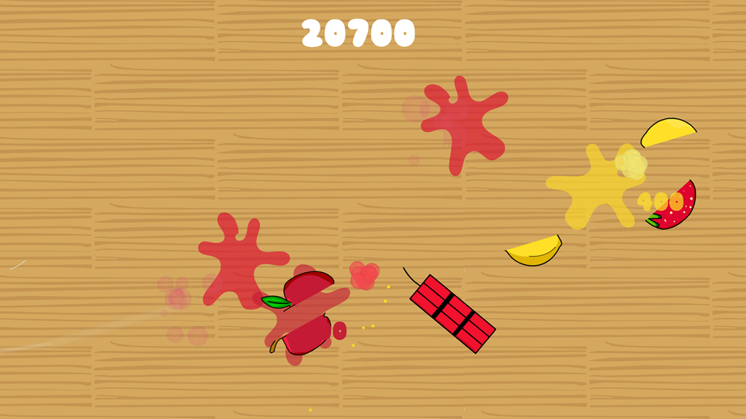 Slice the fruits. Watch out for TNT. In this game you can slice different kinds of fruits in half by using your touchscreen or mouse. You can holddown the left mouse button to make a slash or use your finger and make a slice. Depending on you chop angle you see a different cut when slashing the fruit. Try to earn points and don't slice the dynamites.