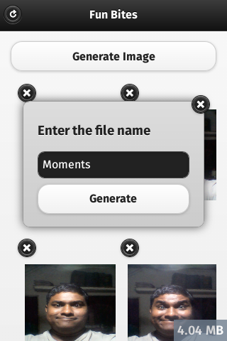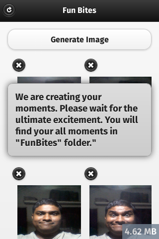 We always try to do something new to have fun with friends. Self image or in other word selfie is one of the most popular word now a days. We all have seen selfies but have you ever imagined about animated selfi! From that point we came up with our idea thats gonna help you to create animated selfie. its a new and exciting way to have fun with friends. And fun always multiplies when we share with our friend circle. Its an app to make fun with your image. Take couple selfie then insert into the app, its gonna generate you an animated gif. You can also share and send this animated selfie/moments with your friends. simple and easy to navigate. Have fun !!! Note: You will find your all generated animated moments in "funBites" folder.